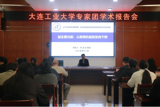 2025年12月11日,大连工业大学食品学院牟光庆教授、钱方教授一行五人莅临我院考察交流,并作专题学术报告。学院领导班子、全体教师、研究生及食品专业本科生代表参加报告会。