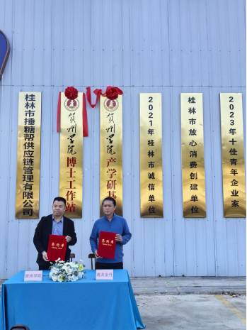 仪式上,宋慕波与捶糖帮供应链管理有限公司代表共同为博士工作站揭牌,并签署了“软牛轧糖品质提升技术研究”合作协议。随后,科研处处长严小威代表我院与遇龙金丹农业科技发展有限公司签署“金桔干片高品质加工关键技术研发与产业化应用”合作协议。根据协议内容,我院将与企业围绕关键技术攻关、特色产品研发等方面开展多层次合作,推动创新链、产业链与人才链深度融合,助力阳朔县食品产业实现技术升级与高质量发展。