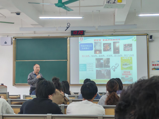教学过程中,段教授坚持以学生为中心、以产出为导向,有机融合项目式教学与研讨式教学。他结合自身科研项目中的真实案例,生动展示了如何运用理论知识解决食品生产实践中的复杂工程问题,着力培养学生分析并解决实际问题的能力。课堂互动充分,学生参与度高,体现了“学生主体、教师主导”的教学理念。