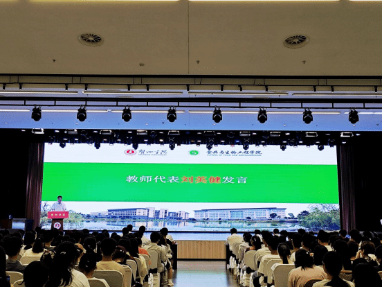 2022级生物工程2班学生庞菲作为在校生代表,分享了平衡学习与社团活动、利用学院资源提升自我、面对挫折坚持不懈等方面的经验,希望新生积极进取、互助友爱。