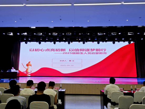 典礼最后,学院副书记(主持工作)蔡文为新生开展入党启蒙教育。她介绍了党的基本知识、大学生入党的意义和流程,鼓励有志青年积极向党组织靠拢,将个人理想融入党和国家事业,争取早日加入中国共产党。