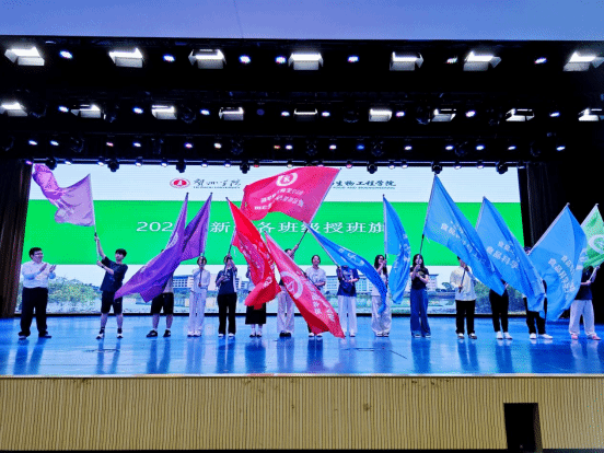 典礼上,学院副院长(主持工作)商飞飞为各新生班级授予班旗,象征着新集体正式扬帆起航;学院领导为新生班主任颁发聘书,希望他们成为学生成长道路上的知心朋友和引路人。
